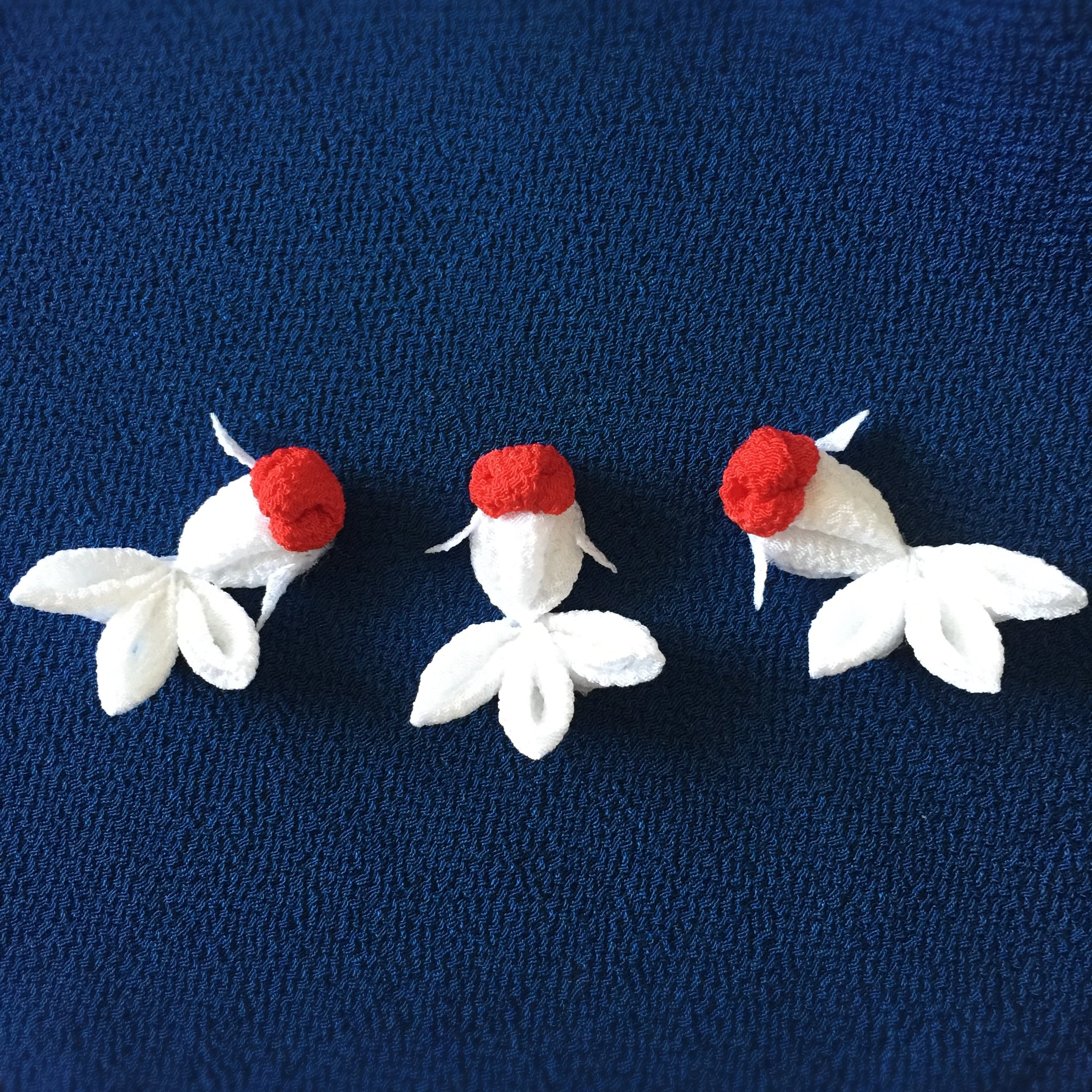 つまみ細工☆丹頂 左右曲がり・正面3点セット(Goldfish "Tancho" set in three directions)